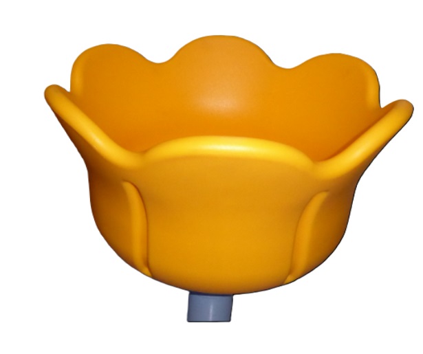 Gelbe Mini Drehschale zum reisetzen für eine Person. Abmessung: ø 57cm. Höhe montiert (Oberkante Boden bis Oberkante Karussell): 53cm. Gesamtlänge 158cm (Pfahl + Oberteil)