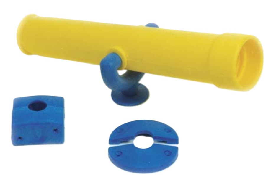 Spiel Fernrohr. Farbe: blau - gelb: Material: Kunststoff, inklusive Montagekit mit Befestigungsfuss und Schrauben, einzlen im Polybeutel verpackt,