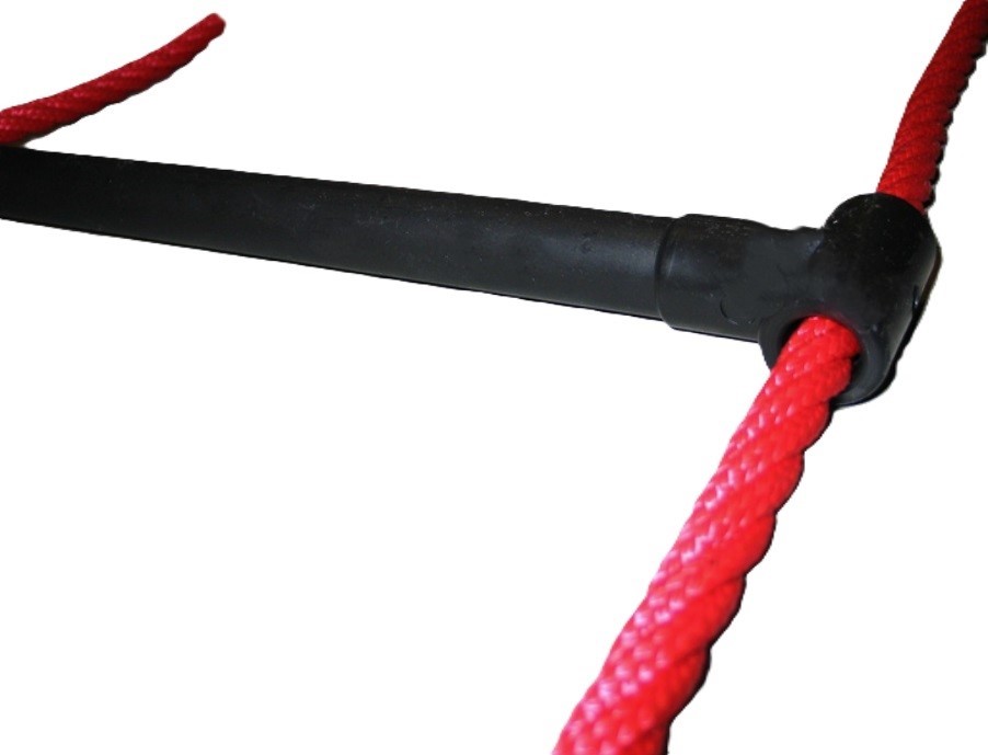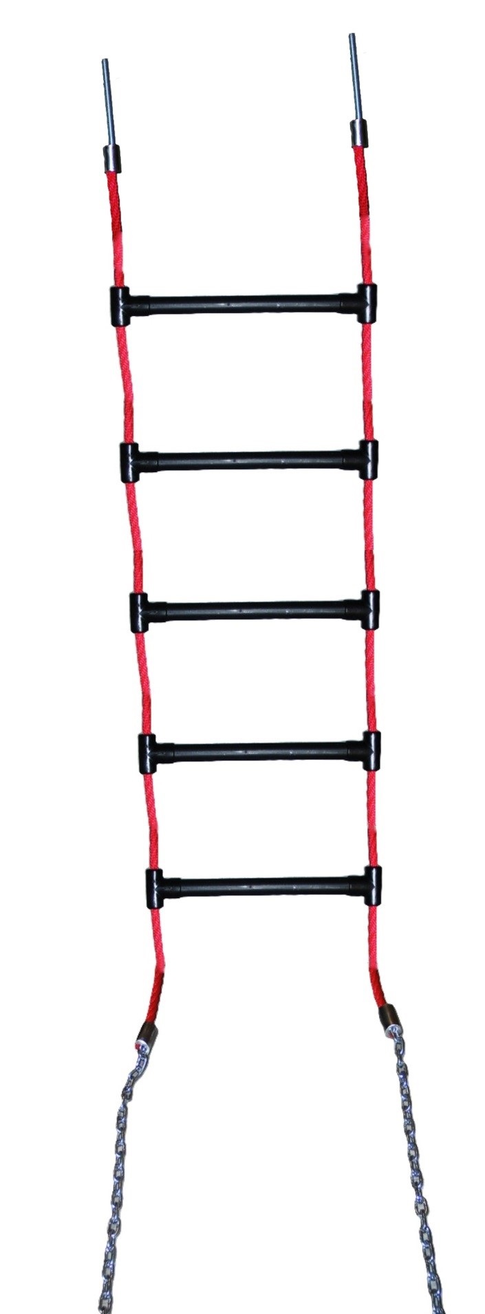 Profi Strickleiter DIN EN 1176, speziell für den öffentlichen Bereich, gefertigt aus 16 mm Mammutseil mit Stahleinlage, mit schwarzen Kunststoff Leitersprossen, Länge 2 m. Befestigung oben 2 Gewindestangen M12 x 120 mm. Befestigung unten 2 x 70 cm Kette als Erdanker. Seilfarbe: Rot, Leitersprossen: Schwarz.
