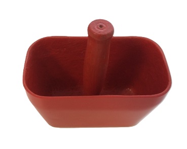 Mit stabilen Holzgriff. Prüfkörper Material: GFK. Farbe: Rot. Prüfkörper für Spielplatzprüfer DIN 79161.