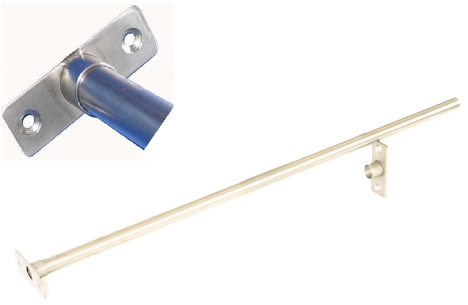 Ø 30mm Edelstahlrohr. Für Kantholz. 2 Befestigungsflansche mit je M10 Senkbohrung. 2 Flansche 120mm x 50mm. 1 Flansch zum ausgleichen von Längendifferenz. 1 Flansch verschweißt.