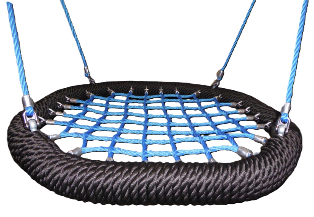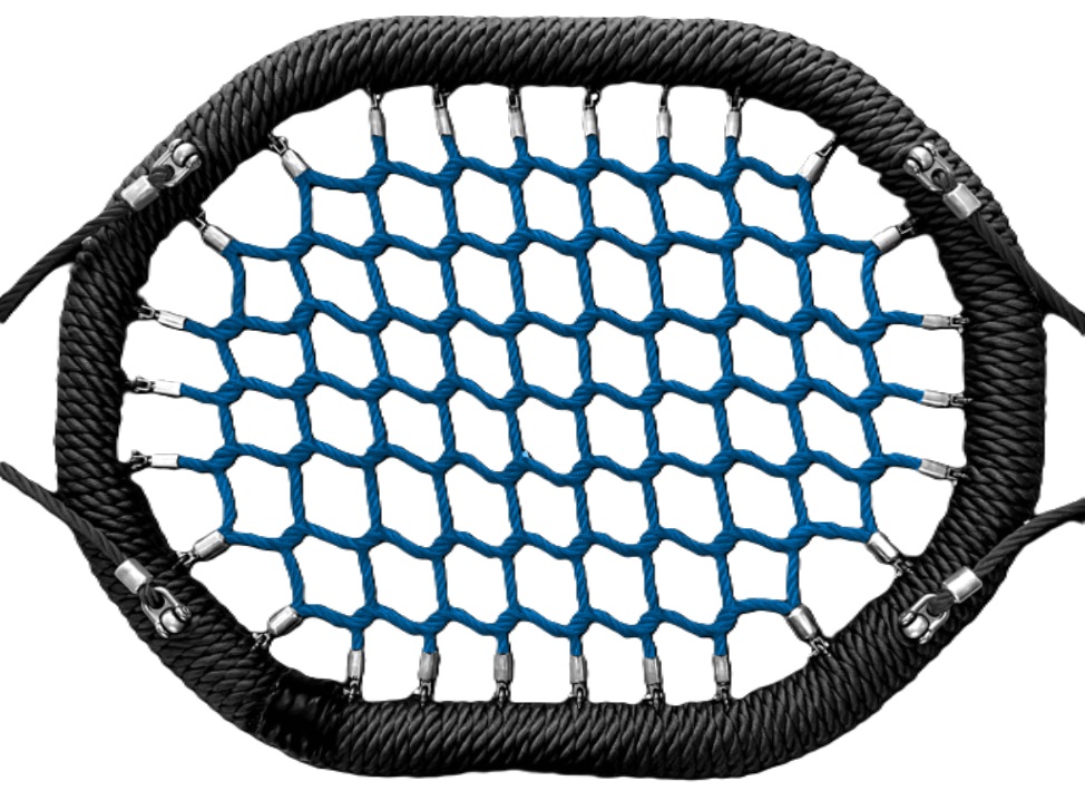 Ovaler Schaukelkorb Form 1000mm x 1300mm. Tüv zertifiziert: Stoßgedämpfter, mit Seil umwickelter, mehrteiliger Stahlring: Korbnetz aus Seil mit Stahleinlage: Gruppenschaukel für mehrere Kinder Inklusive 2 m Aufhängung bestehend aus: 4 x 1,30m Seil verpresst und verlängert mit 70 cm Kette. Für 2,50m Montagehöhe: Standardfarbe: blau-schwarz. Super Qualität – made in Germany. Zur Montage werden Kardangelenke mit Fangkette benötigt.