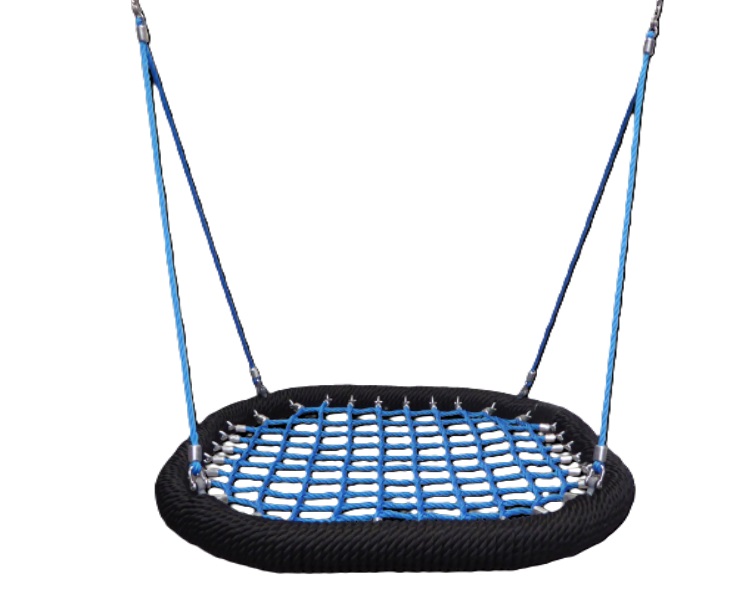 1400mm Durchmesser. Einzigartige, achteckige Form Tüv zertifiziert: Stoßgedämpfter, mit Seil umwickelter, mehrteiliger Stahlring: Korbnetz aus Seil mit Stahleinlage: Gruppenschaukel für mehrere Kinder Inklusive 2 m Aufhängung bestehend aus: 4 x 1,30m Seil verpresst und verlängert mit 70 cm Kette. Für 2,50m Montagehöhe: Standardfarbe: blau-schwarz. Super Qualität – made in Germany. Zur Montage werden Kardangelenke mit Fangkette benötigt.