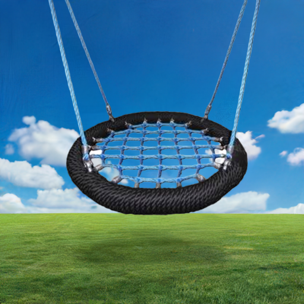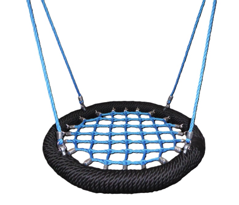 1200mm Durchmesser. Einzigartige, achteckige Form Tüv zertifiziert: Stoßgedämpfter, mit Seil umwickelter, mehrteiliger Stahlring: Korbnetz aus Seil mit Stahleinlage: Gruppenschaukel für mehrere Kinder Inklusive 2 m Aufhängung bestehend aus: 4 x 1,30m Seil verpresst und verlängert mit 70 cm Kette. Für 2,50m Montagehöhe: Standardfarbe: blau-schwarz. Super Qualität – made in Germany. Zur Montage werden Kardangelenke mit Fangkette benötigt.