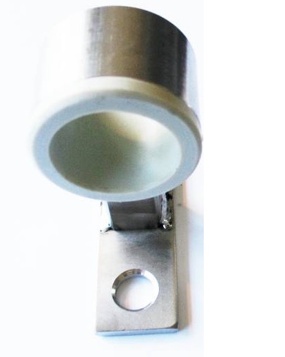 Material: Edelstahl mit PA Buchse. Massive Ausführung. Passend für 5mm und 6mm Ketten. Ideal zur Führung von Sand- Aufzugketten. Mit senkrechten Flansch.