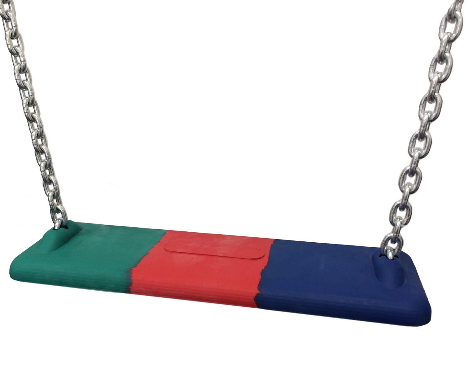 TÜV geprüfter Schaukelsitz, DIN EN 1176. Formschöner Style Schaukelsitz. Größe ca. 460mm x 150mm x 30mm. Für den öffentlichen wie auch privaten Bereich. Witterungsbeständiges festes Gummi. Stabile vollflächige Aluminiumverstärkung. Sitzkante Unterseite durchgehend umher gepuffert. Sitzfarbe: Grün - rot - blau ineinander verlaufend.