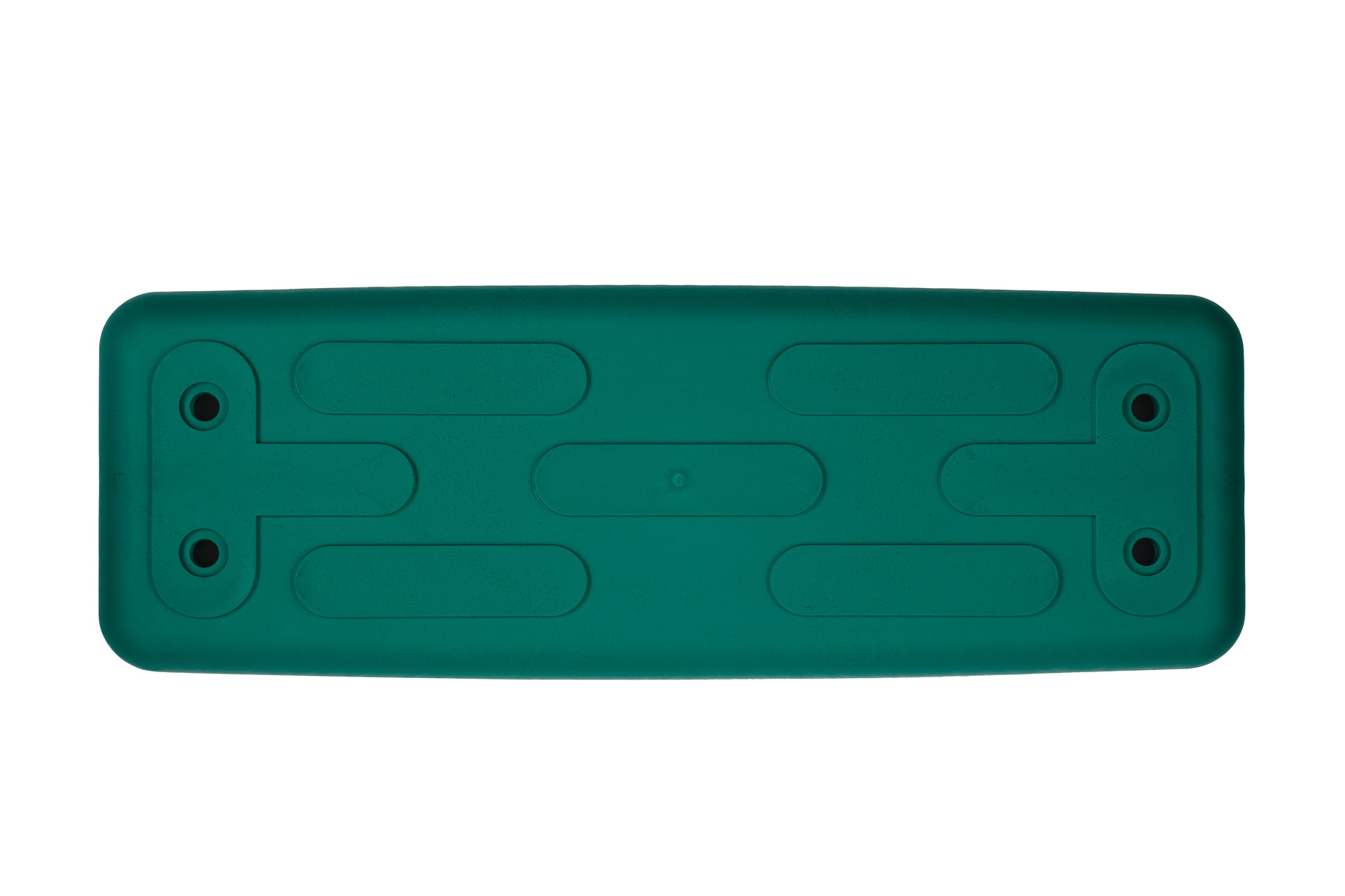 TÜV geprüfter Schaukelsitz, DIN EN 1176. Gummimaterial. Vollflächige Aluminiumverstärkung. Sitzkante umher abgerundet. Ca. 430mm x 170mm x 30mm. Keine harten Kanten. Farbe:Grün