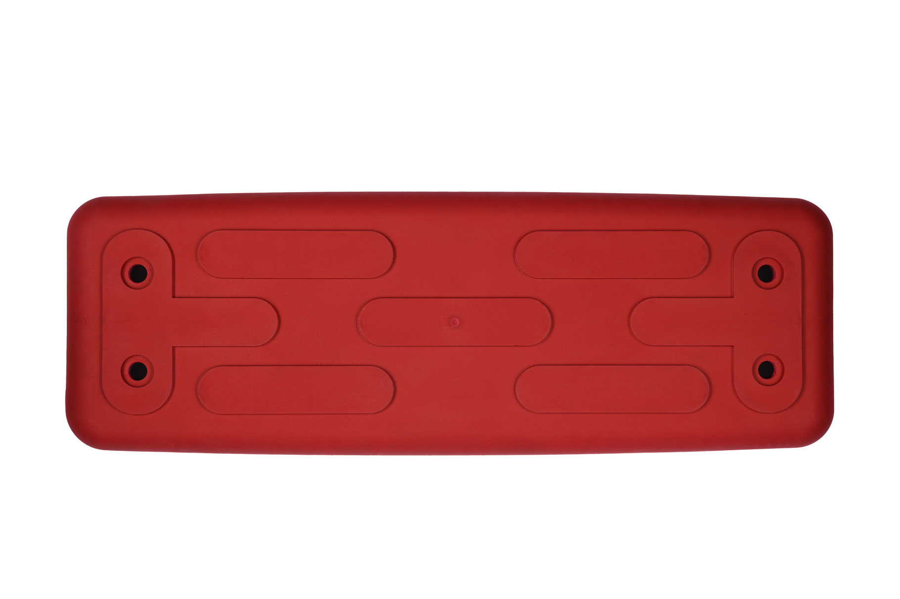 TÜV geprüfter Schaukelsitz, DIN EN 1176. Gummimaterial. Vollflächige Aluminiumverstärkung. Sitzkante umher abgerundet. Ca. 430mm x 170mm x 30mm. Keine harten Kanten. Farbe: Rot